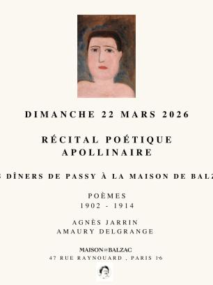 Récital Poétique 27EME PRINTEMPS DES POETES. APOLLINAIRE. LES DINERS DE PASSY A LA MAISON DE BALZAC
