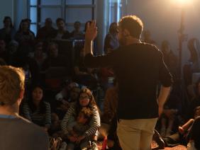La Cour des Contes, c’est un collectif de conteurs et conteuses qui s’est juré, par un soir de novembre 2013, de faire redécouvrir l’art du conte à sa génération. Compagnie pour les uns, bande organisée pour les autres, ils offrent, à celles et ceux qui veulent bien les écouter, leurs histoires, puisées dans les trésors de la tradition orale ou bien nées des rêves de la veille. Sur la scène d’un théâtre ou sur les pavés parisiens, dans les salles d’un musée ou par une nuit de festival, La Cour n’a qu’un seul but : participer, avec vous, au ré-enchantement du monde.